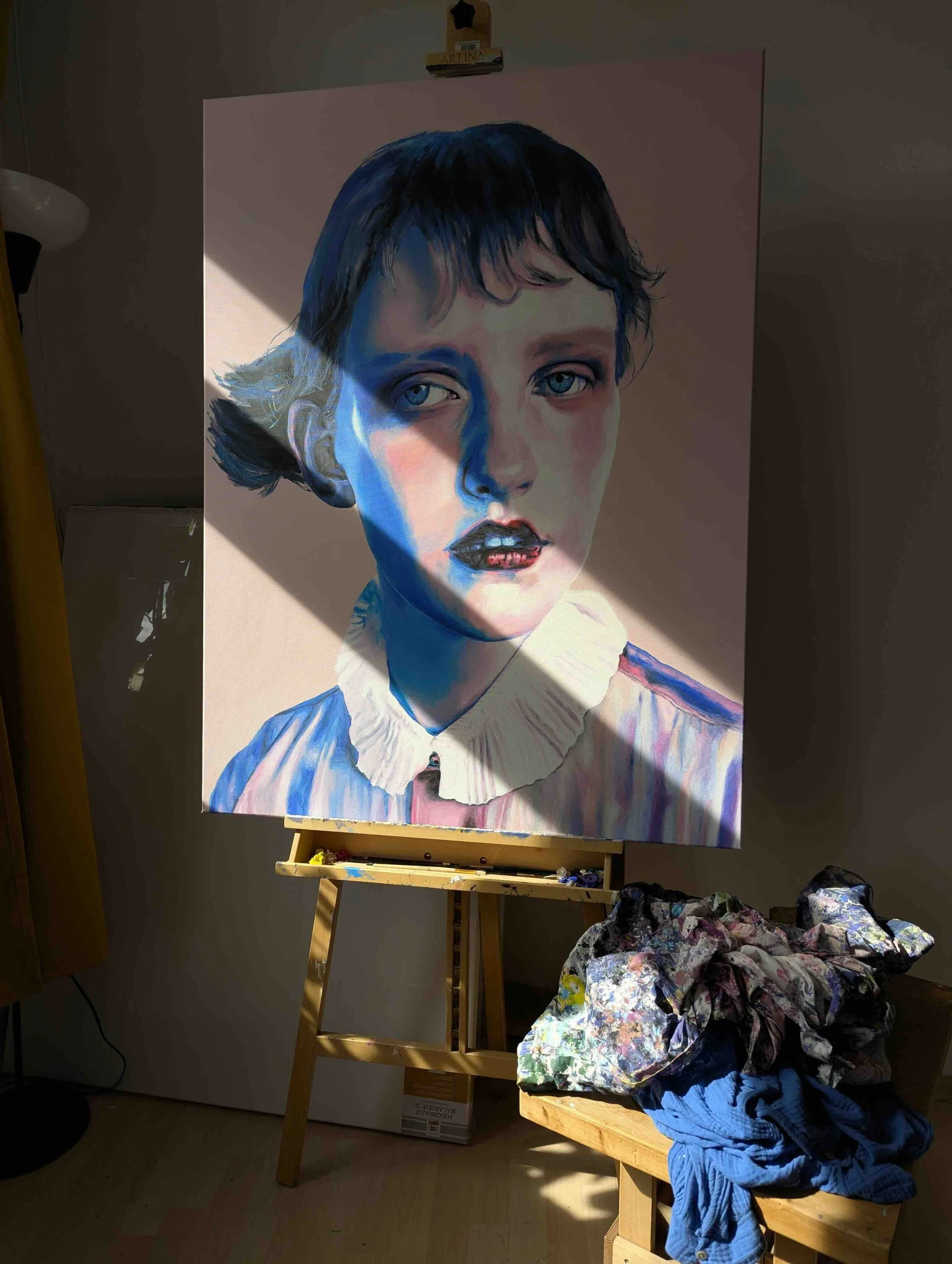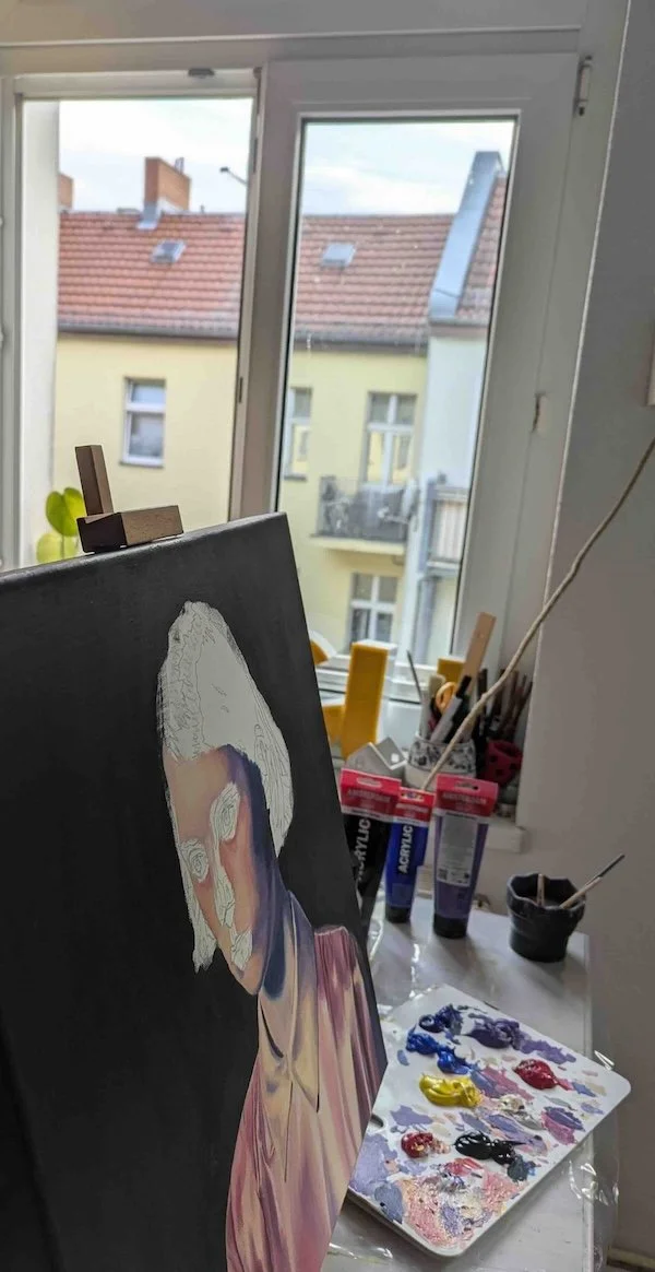 Aus einer Vielzahl digitaler Entwürfe bleiben am Ende nur wenige Motive übrig. Friederike beschreibt, wie sehr sie sich bei der Auswahl auf ihr Bauchgefühl verlässt und wie besonders der Moment ist, in dem sie weiß “das ist sie” - die Grundlage für meine nächste Ölmalerei. Dieser Moment markiert den Übergang vom digitalen Bild zur künstlerischen und gedanklichen Auseinandersetzung auf der Leinwand. In dieser Phase entsteht bereits eine innere Geschichte zu dem Portrait, die den weiteren Prozess begleitet und die Ausarbeitung in Öl bestimmt.
