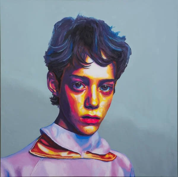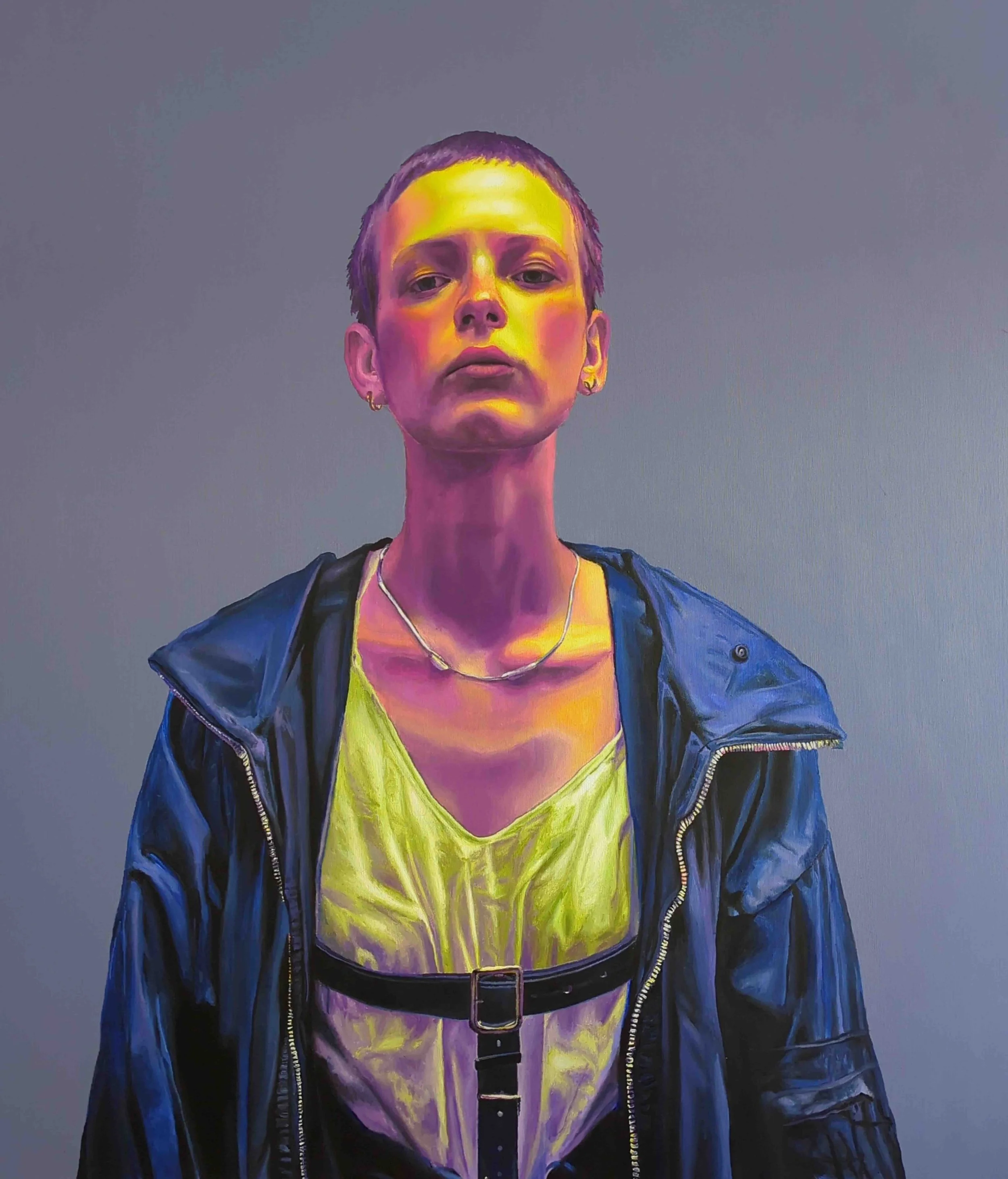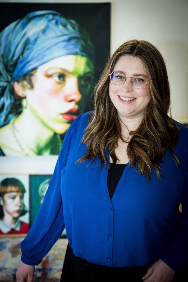 In der Malerei lösen sich Friederike Meiers Figuren von ihrem KI-generierten fotorealistischen Ursprung und entwickeln eine eigene, expressive Bildsprache. Farbe, Kontrast und Materialität verleihen den Porträts eine körperliche Präsenz, die im Raum wirkt und unabhängig von ihrem digitalen Ursprung Bestand hat. Der physische Prozess des Malens wird so zu einem Gegengewicht zur Geschwindigkeit und Flüchtigkeit der digitalen Welt. Friederikes Begeisterung, als sie über ihren Workflow spricht, reißt richtig mit!