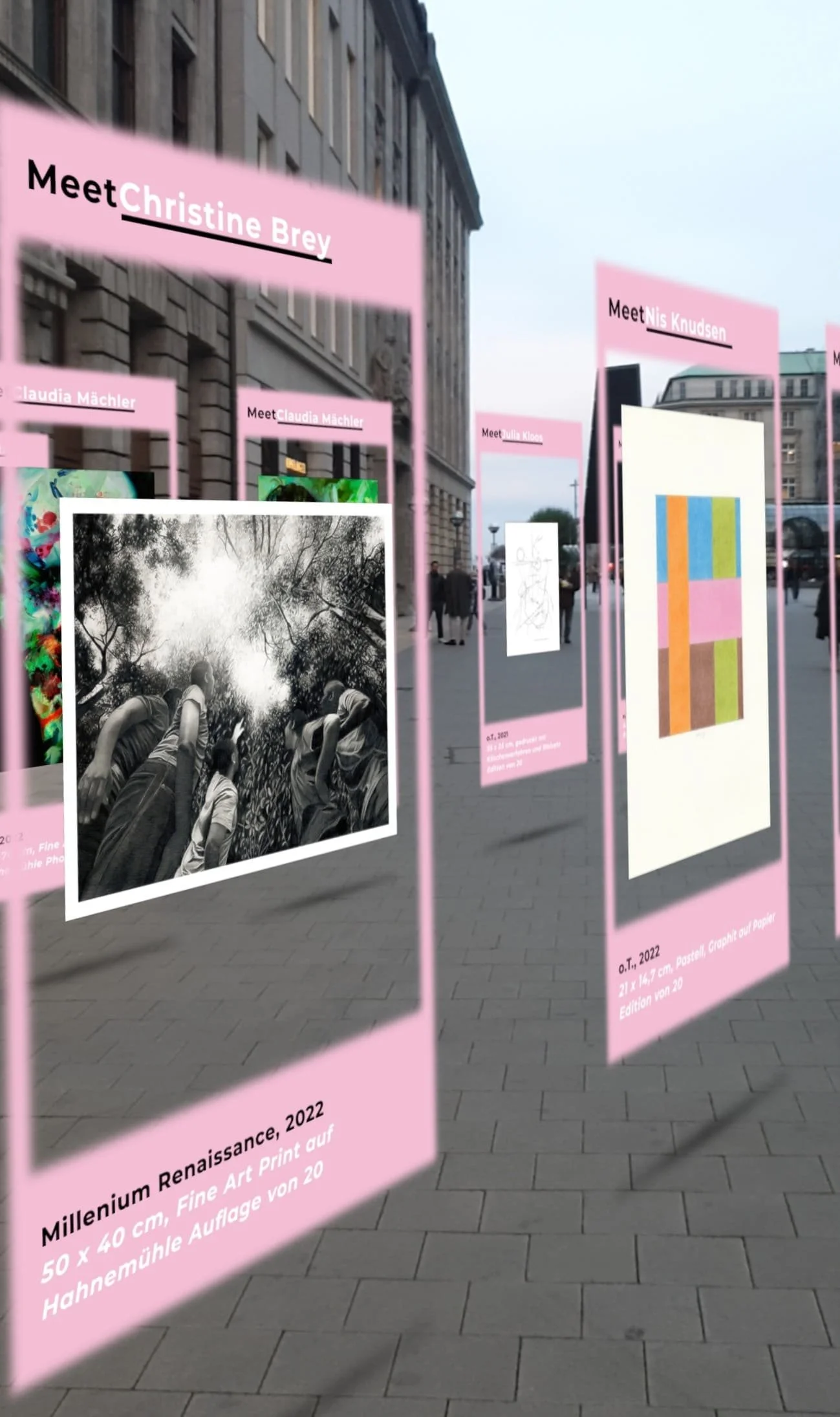 Wer erinnert sich noch daran, wie während der Pandemie über jede Berufsgruppe berichtet wird – und über bildende Künstlerinnen und Künstler so gut wie gar nicht? Das Argument dahinter lautet: Die können doch einfach ins Atelier gehen und weiterarbeiten. Anna Schwan, die seit ihrer Kindheit von Kultur umgeben und jahrelang selbst kreativ tätig ist, startet mit Blick auf fehlende Einnahmen, Inspiration und Aufträge für Künstler:innen kurzerhand einen Aufruf über Instagram: Zeigt uns Eure Werke, wir bringen sie auf Plakatwände - über Annas PR-Agentur. Was für eine großartige Idee! Innerhalb eines Monats melden sich 150 Künstlerinnen und Künstler. Die Resonanz ist so überwältigend, dass Anna beschließt, daraus etwas Dauerhaftes zu machen – eine gemeinnützige Stiftung.